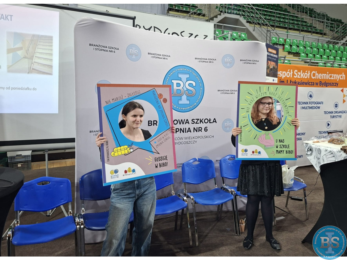 We wtorek 31.03.2026 uczestniczyliśmy w Bydgoskim Forum Szkół CV 2026, podczas którego przedstawialiśmy naszą ofertę edukacyjną. Dziękujemy uczennicom: Zuzi oraz Viktorii za zaangażowanie i godne reprezentowanie BS06. Zapraszamy wszystkich zainteresowanych edukacją w naszej szkole.