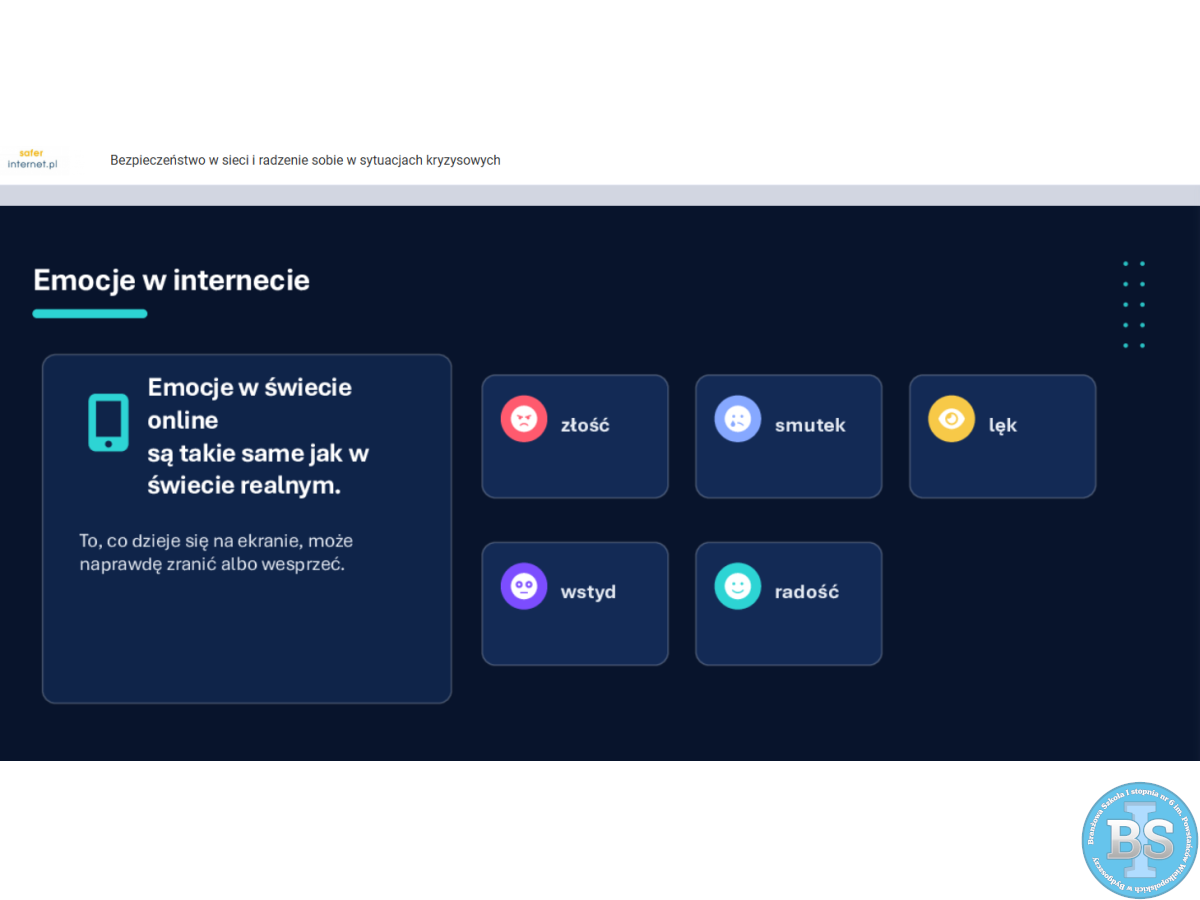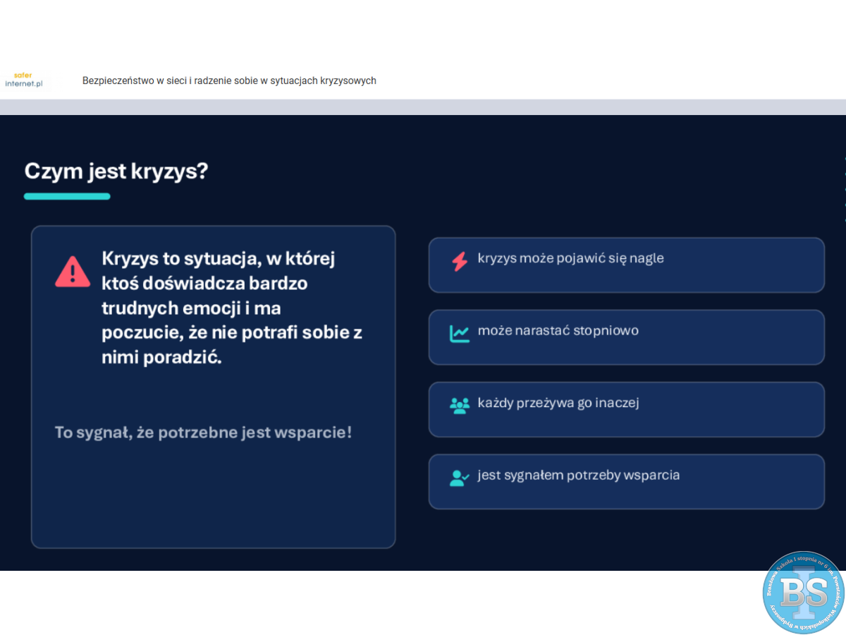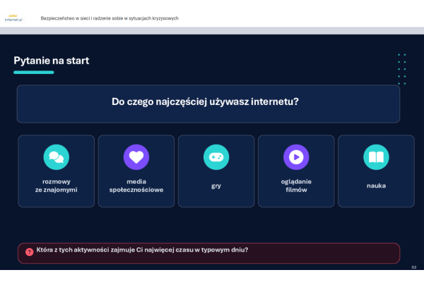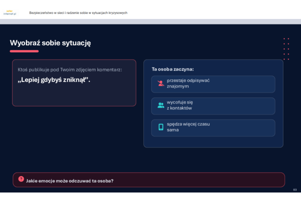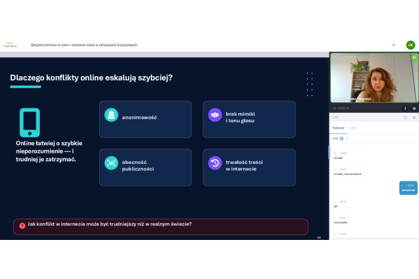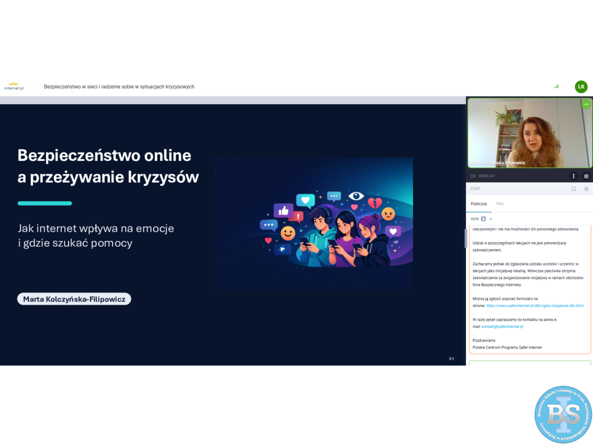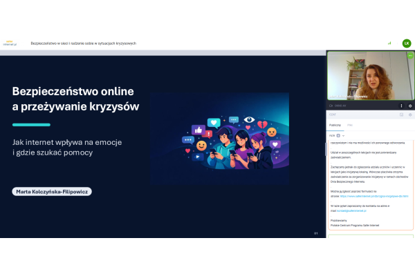 „LEKCJA ONLINE - BEZPIECZEŃSTWO W SIECI I RADZENIE SOBIE W SYTUACJACH KRYZYSOWYCH”