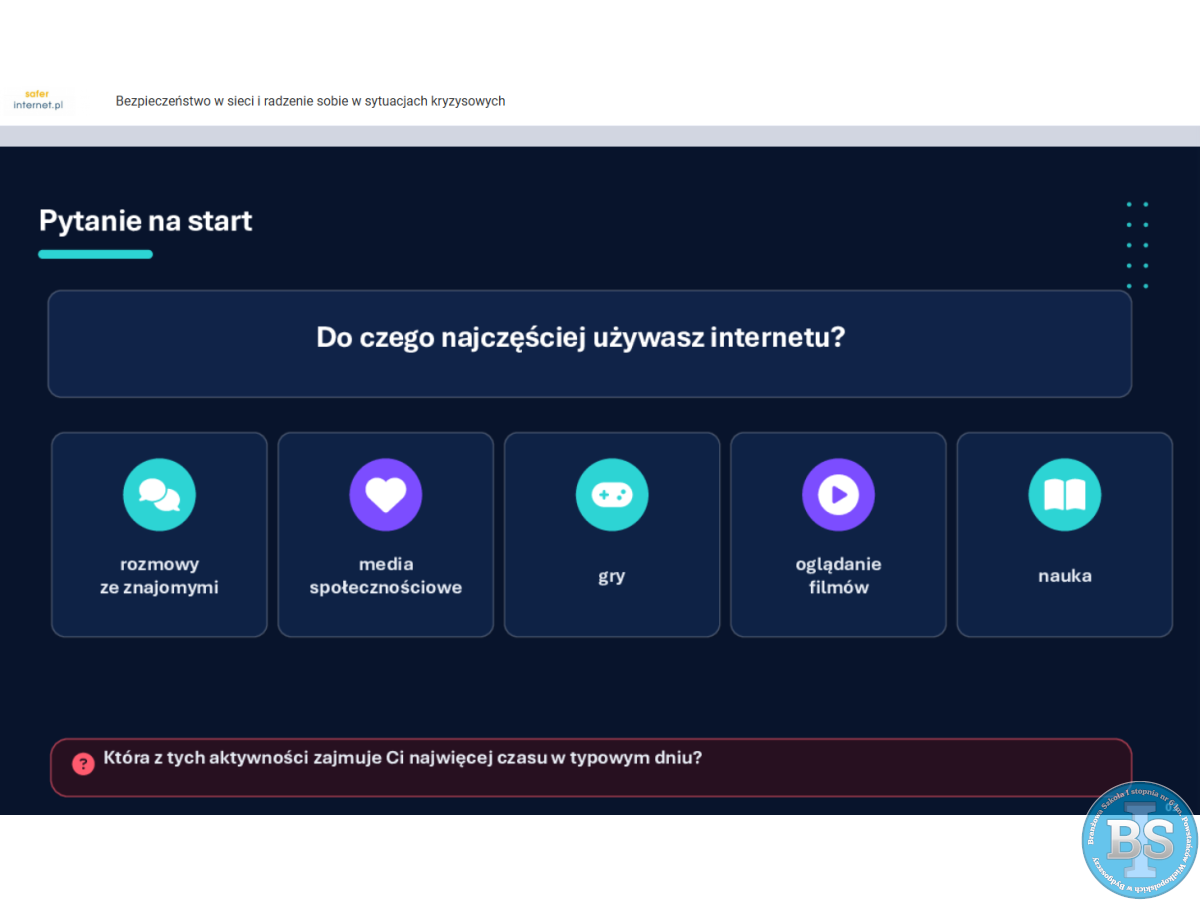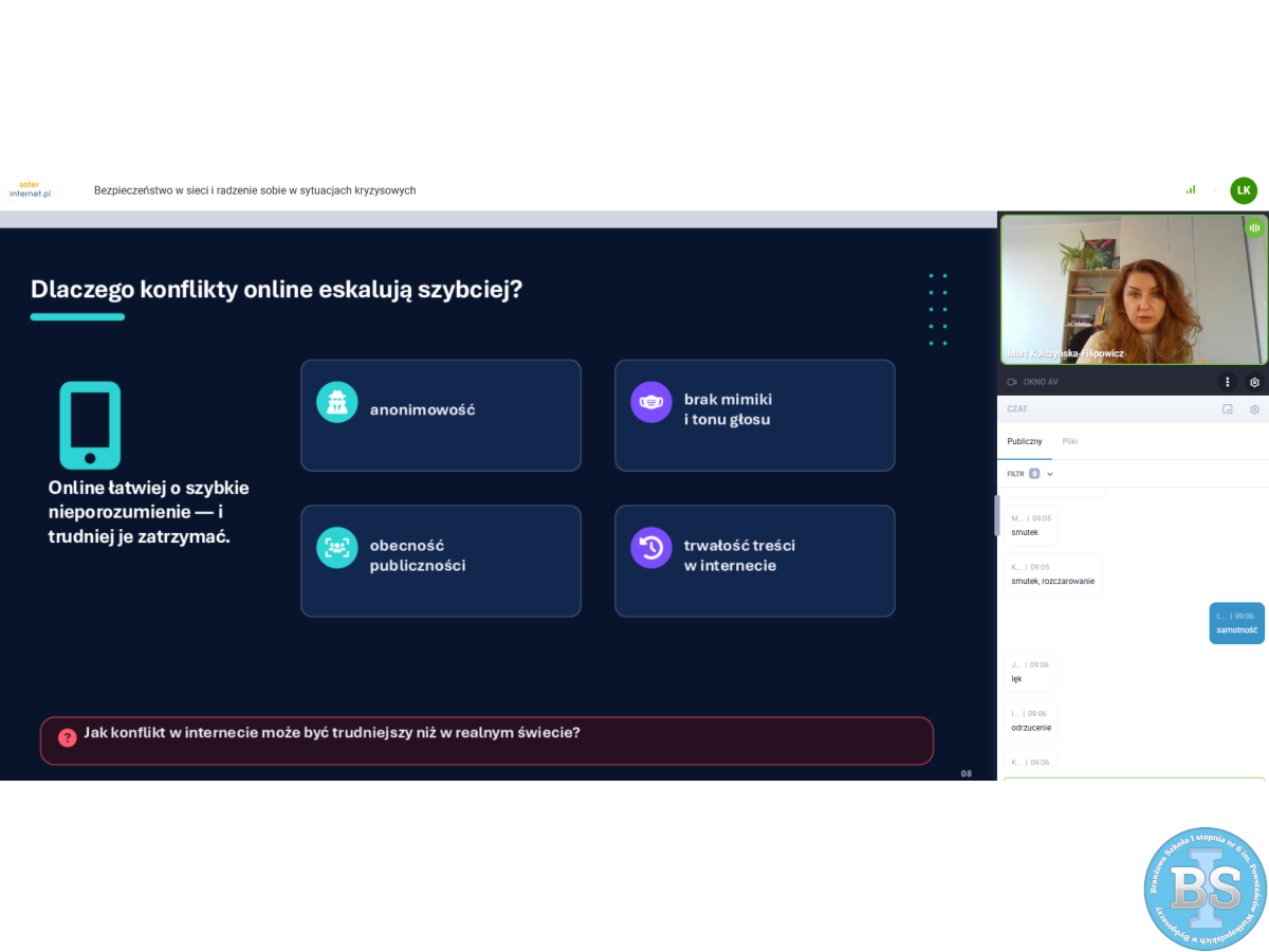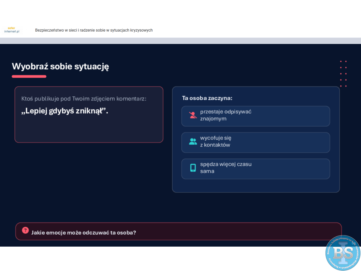 „LEKCJA ONLINE - BEZPIECZEŃSTWO W SIECI I RADZENIE SOBIE W SYTUACJACH KRYZYSOWYCH”