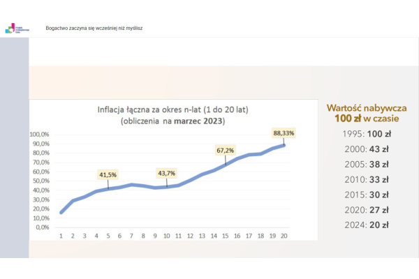 Kluczowym elementem całości było pokazanie znaczenia wczesnego startu i długiego horyzontu czasowego w budowie kapitału.