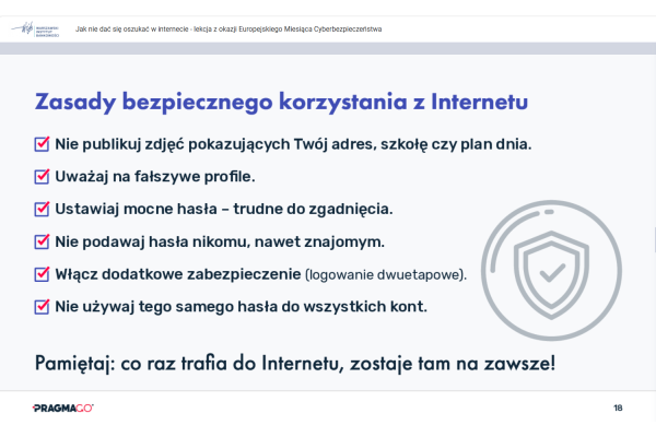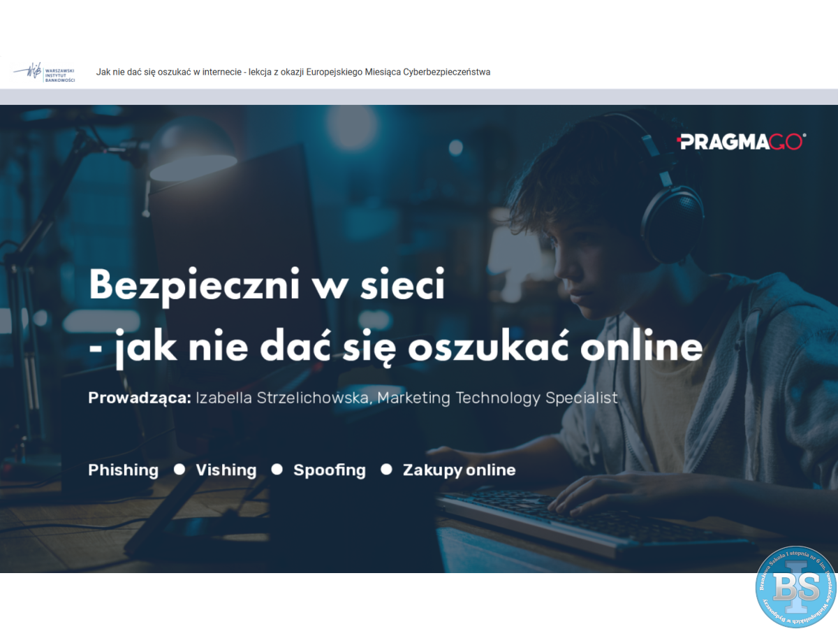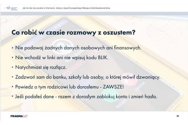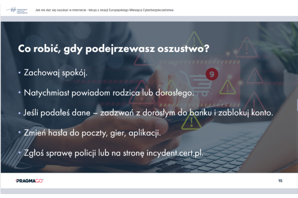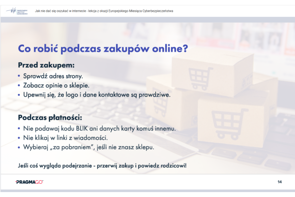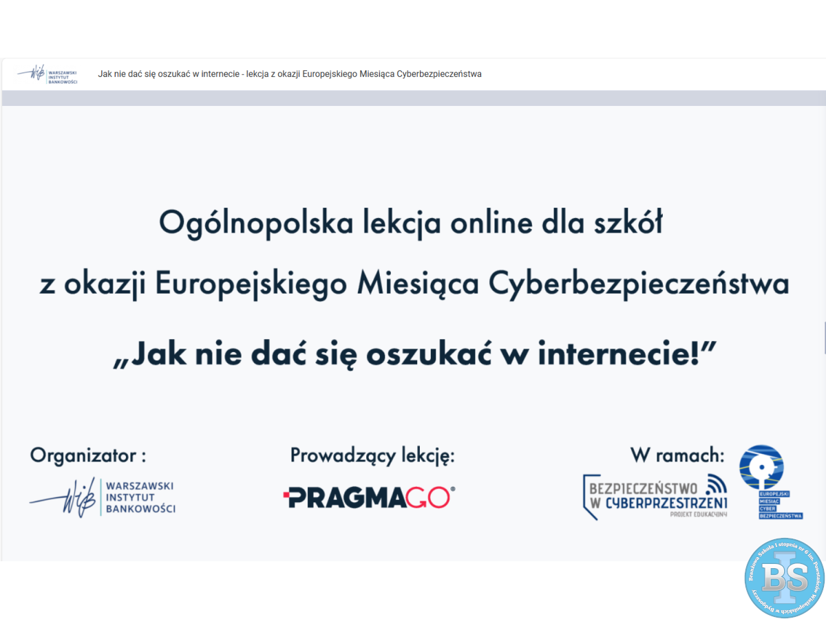 „LEKCJA ONLINE JAK NIE DAĆ SIĘ OSZUKAĆ W INTERNECIE - LEKCJA Z OKAZJI EUROPEJSKIEGO MIESIĄCA CYBERBEZPIECZEŃSTWA”