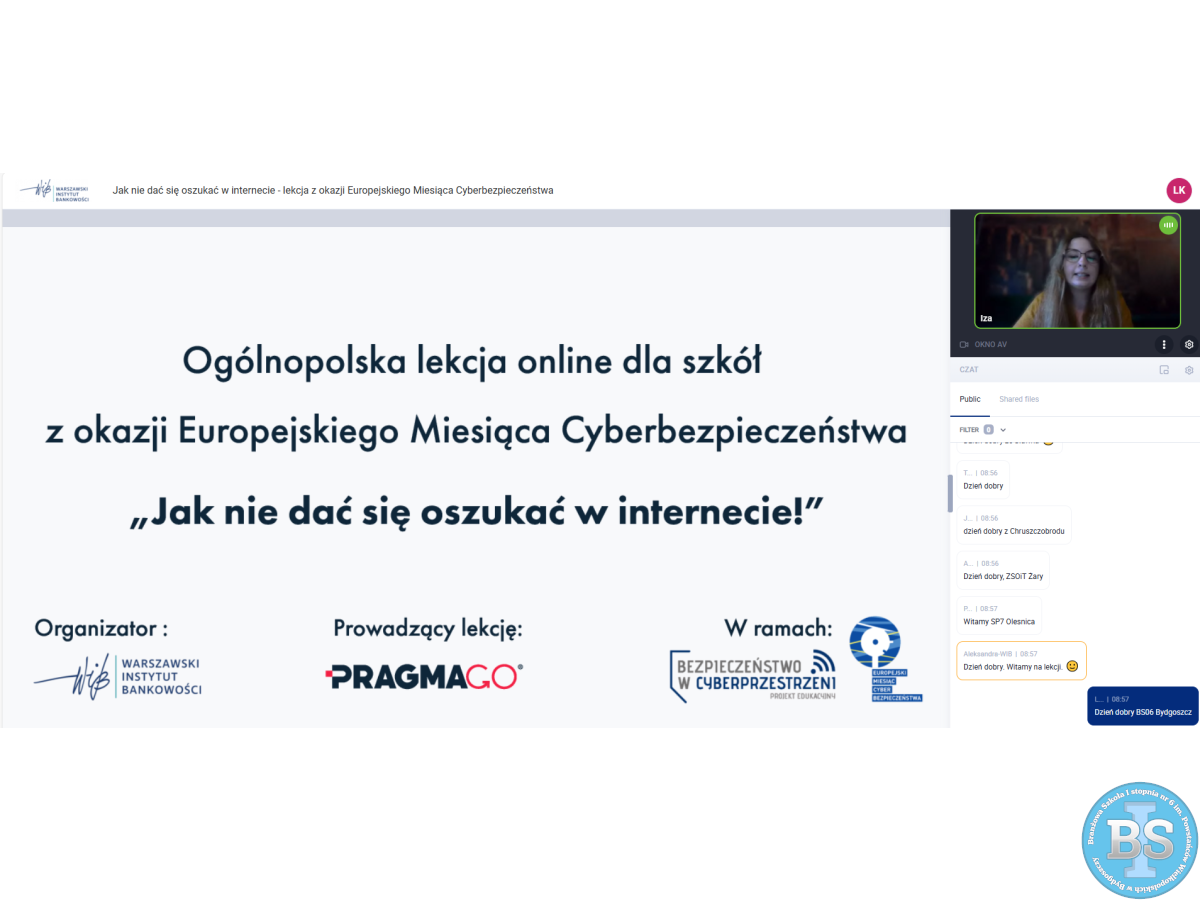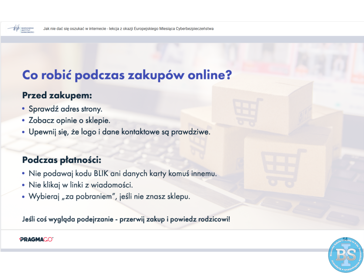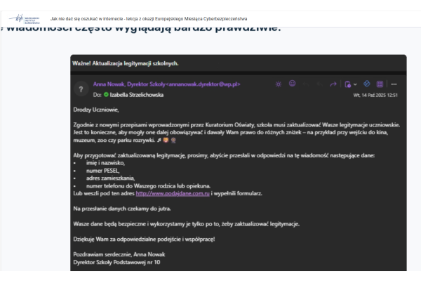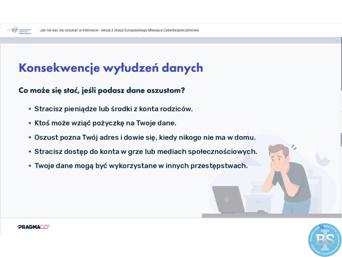 „LEKCJA ONLINE JAK NIE DAĆ SIĘ OSZUKAĆ W INTERNECIE - LEKCJA Z OKAZJI EUROPEJSKIEGO MIESIĄCA CYBERBEZPIECZEŃSTWA”