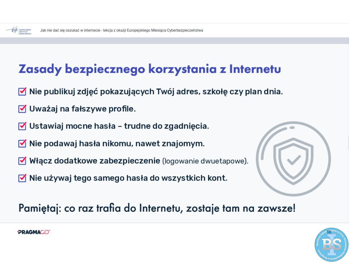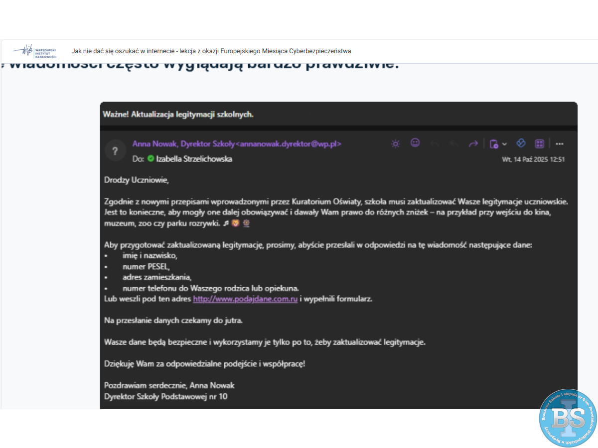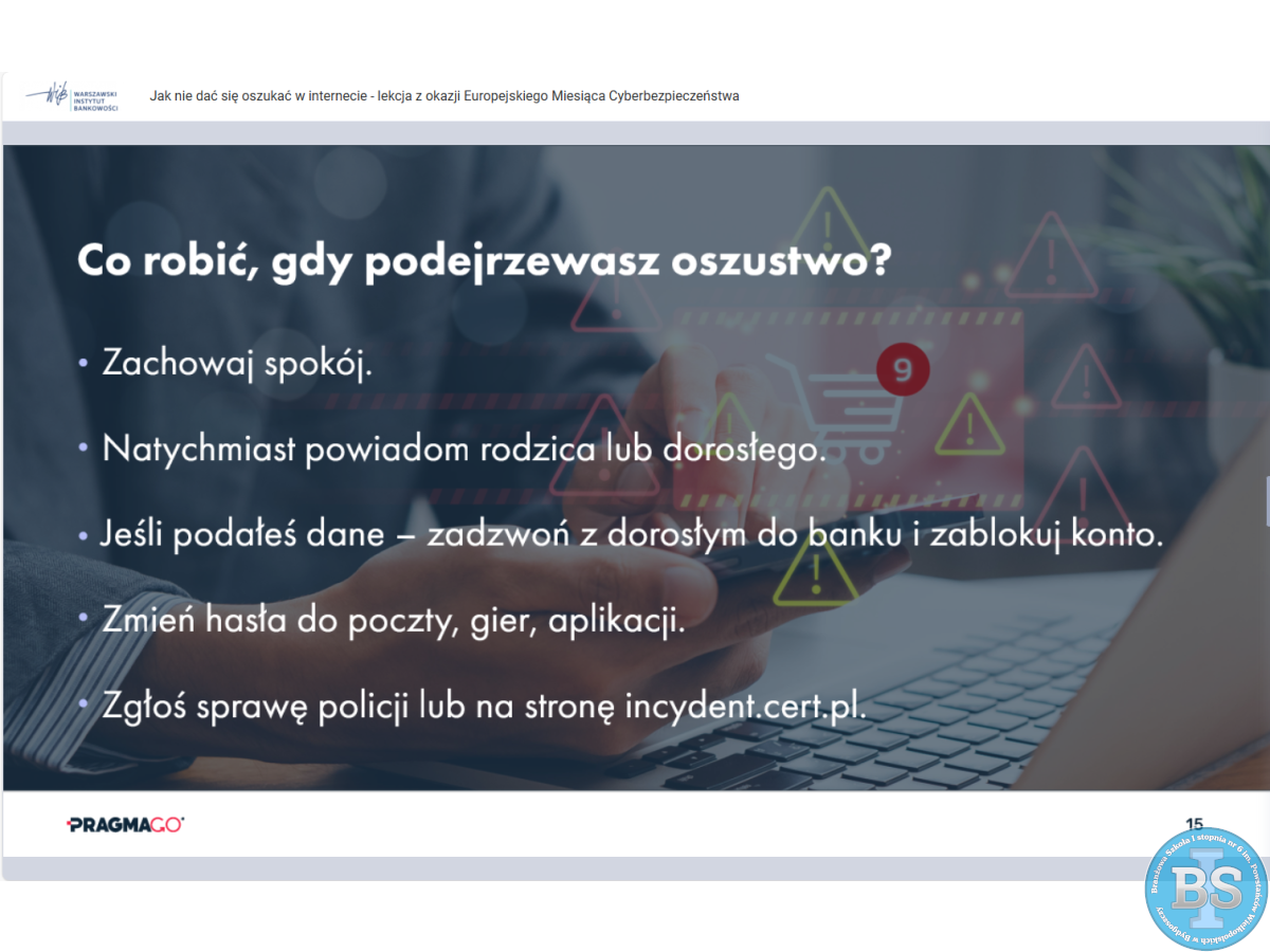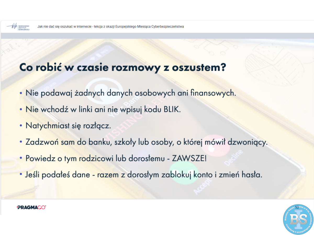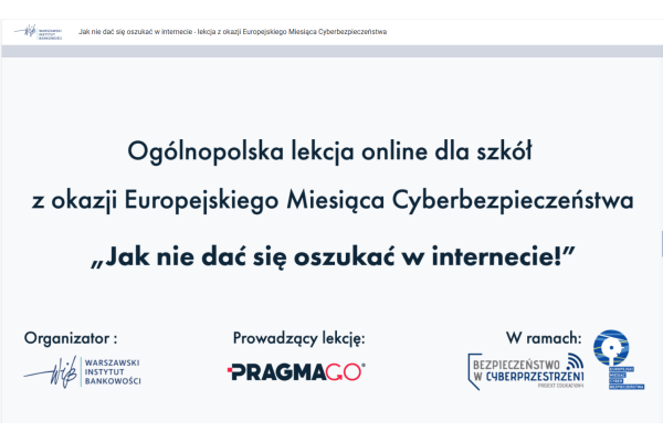 Fundację Warszawskiego Instytutu Bankowości na temat: "JAK NIE DAĆ SIĘ OSZUKAĆ W INTERNECIE - LEKCJA Z OKAZJI EUROPEJSKIEGO MIESIĄCA CYBERBEZPIECZEŃSTWA”