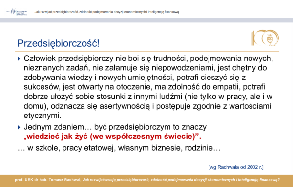 "Jak rozwijać przedsiębiorczość, zdolność podejmowania decyzji ekonomicznych i inteligencję finansową"