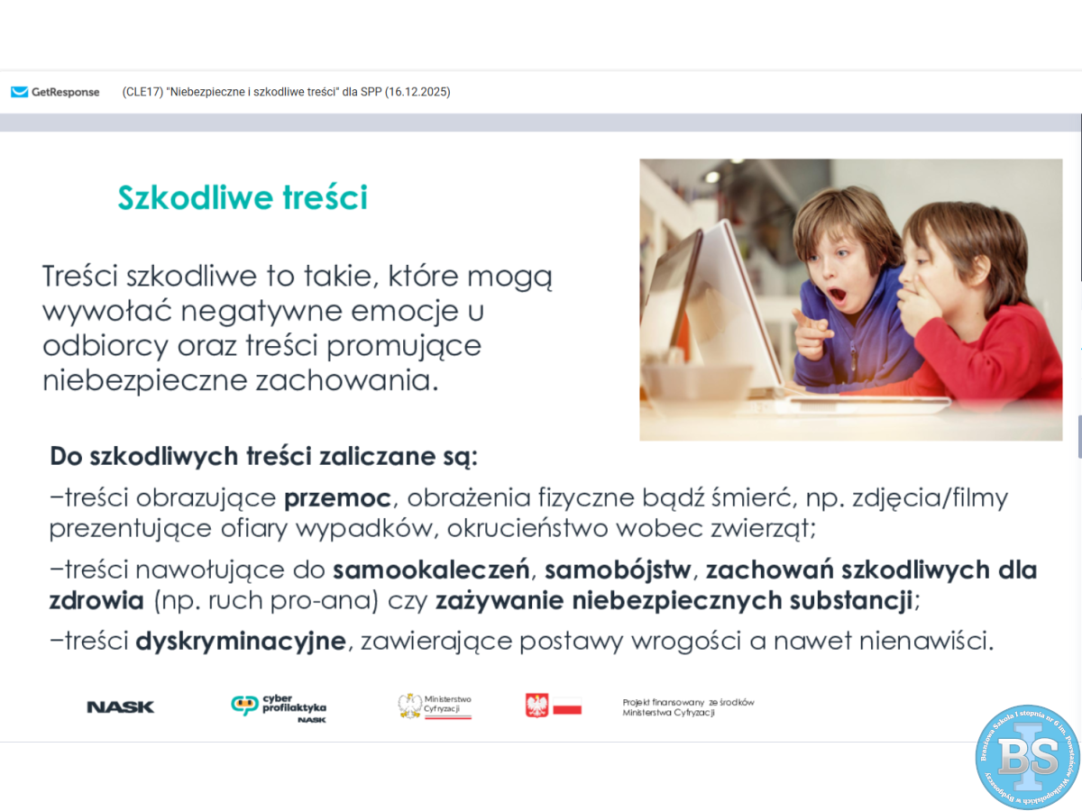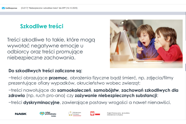 „LEKCJA ONLINE NIEBEZPIECZNE I SZKODLIWE TREŚCI”