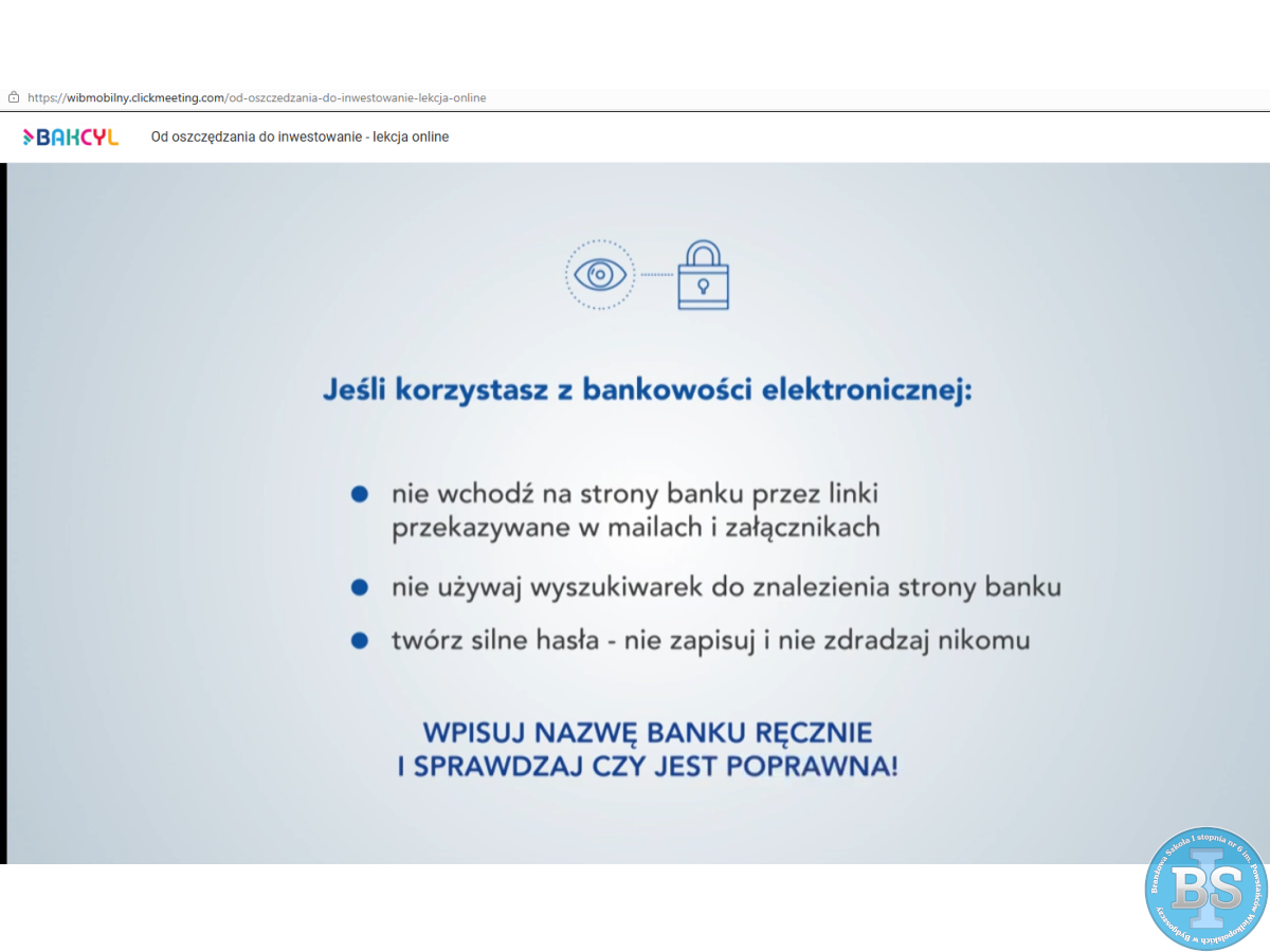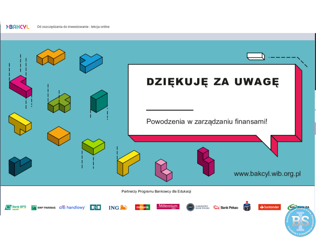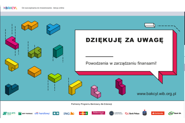 W dniu 19-03-2026r. klasa IC i IIB uczestniczyły w lekcji online „Od oszczędzania do inwestowanie - lekcja online” organizowanej przez Warszawski Instytut Bankowości.