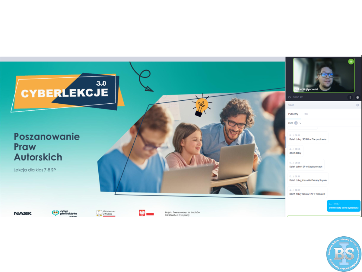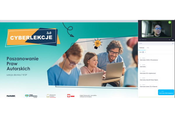 W dniu 09.12.2025r. uczestniczyliśmy w lekcji on-line - Cyberlekcje 3.0. Jest to projekt edukacyjny, który jest realizowany w ramach współpracy Ministerstwa Cyfryzacji oraz Naukowej i Akademickiej Sieci Komputerowej – Państwowego Instytutu Badawczego (NASK-PIB).