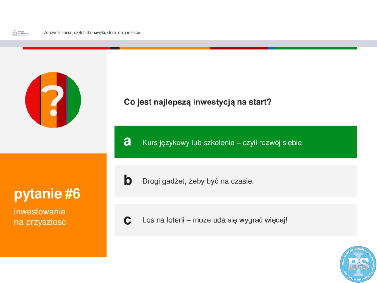 W dniu 09-04-2026r klasa IIIB i IIID uczestniczyły w lekcji online „Zdrowe Finanse, czyli turbonawyki, które robią różnicę” organizowanej przez Warszawski Instytut Bankowości.
