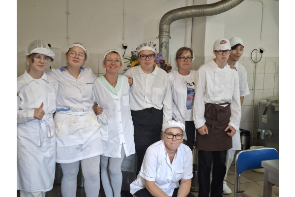 W dniu 10.10.2025 r. uczniowie naszej Szkoły z klasy 1b - zawód Kucharz - okazali swoją wdzięczność nauczycielom zawodu pracującym w kuchni. W geście uznania i sympatii wręczyli im piękne kwiaty i kartkę z życzeniami podziękowania za codzienną pracę, cierpliwość i przekazywanie cennej wiedzy zawodowej.