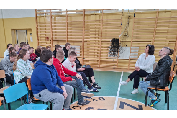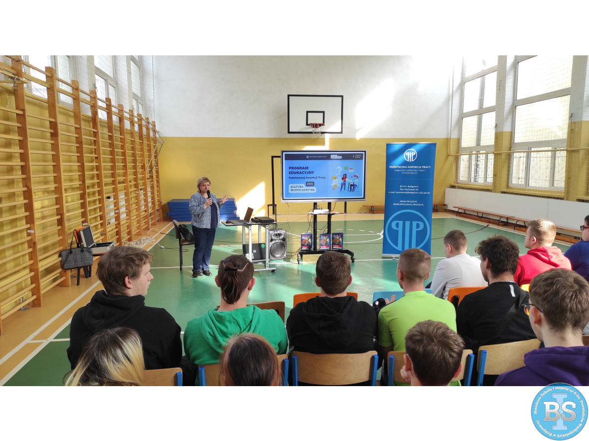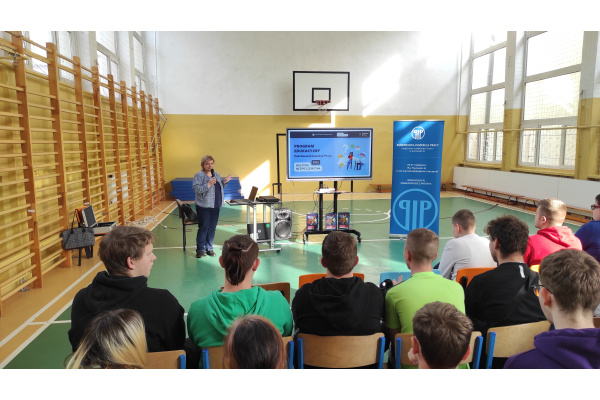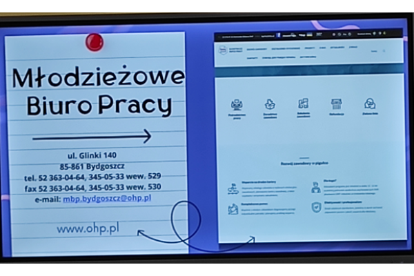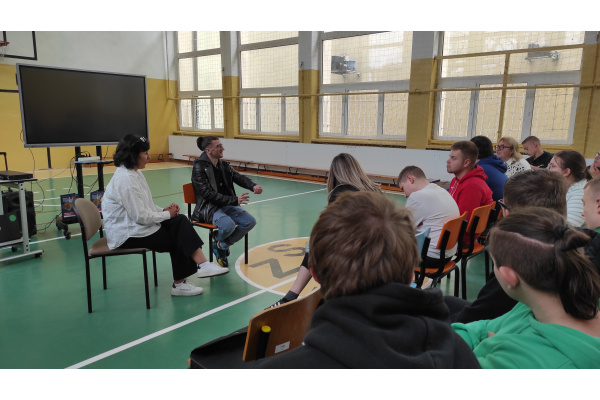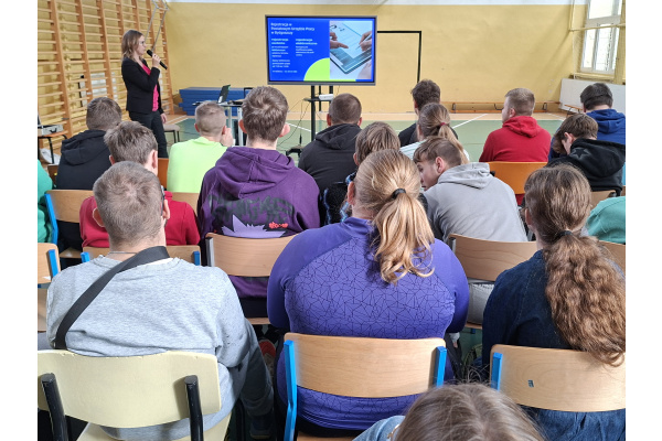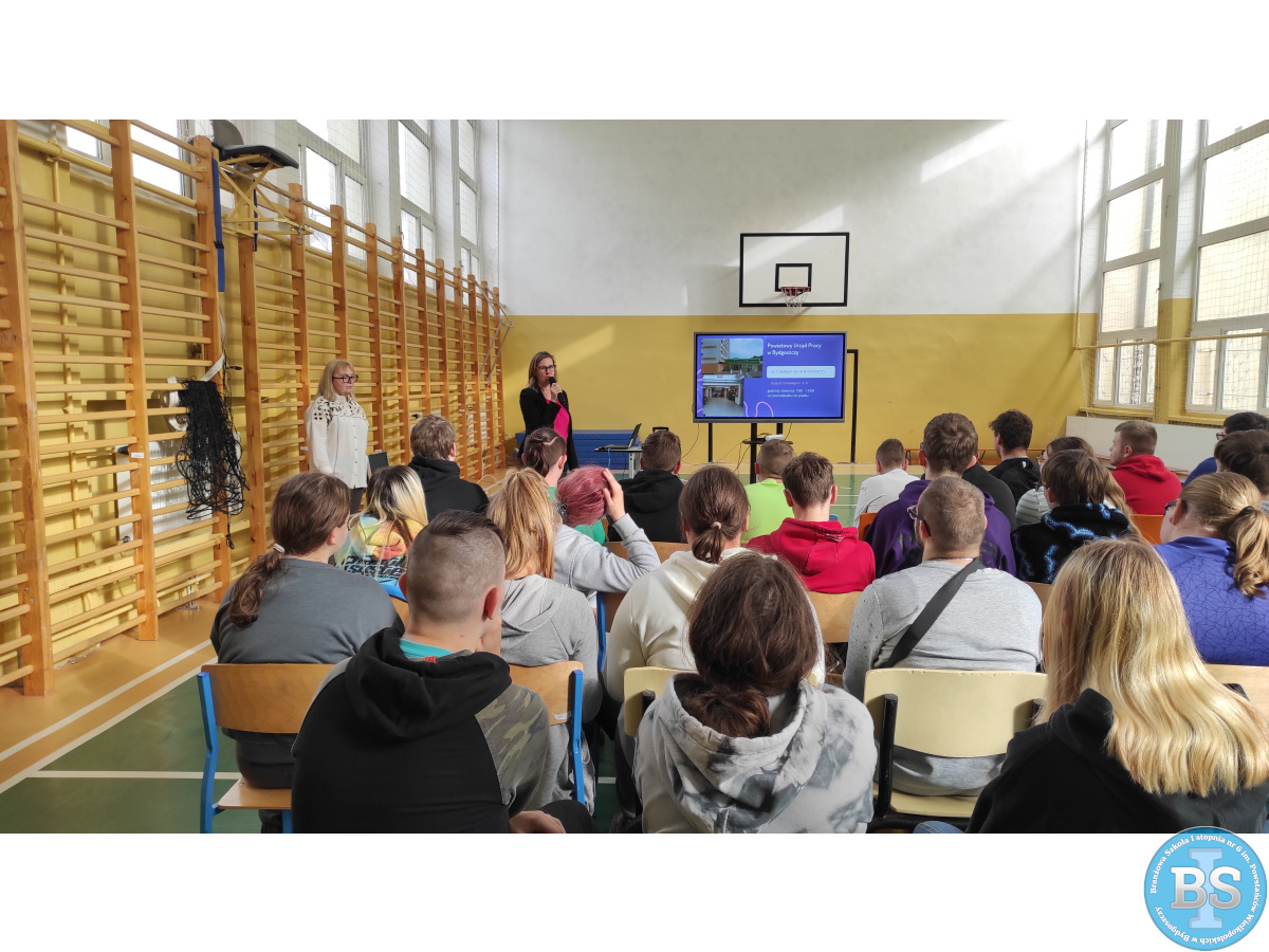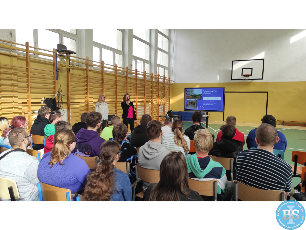 Młodzież spotkała się z przedstawicielami CIiPKZ, Państwowej Inspekcji Pracy oraz absolwentami: Dawidem i Patrykiem.