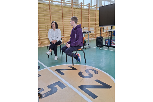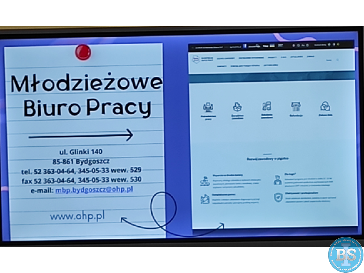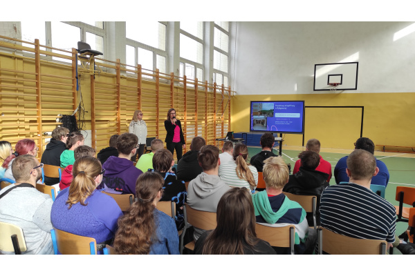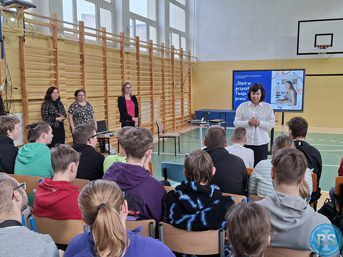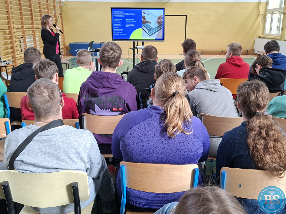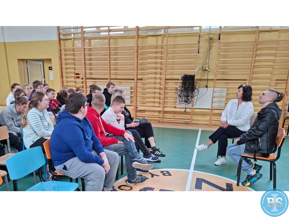 Młodzież spotkała się z przedstawicielami CIiPKZ, Państwowej Inspekcji Pracy oraz absolwentami: Dawidem i Patrykiem.