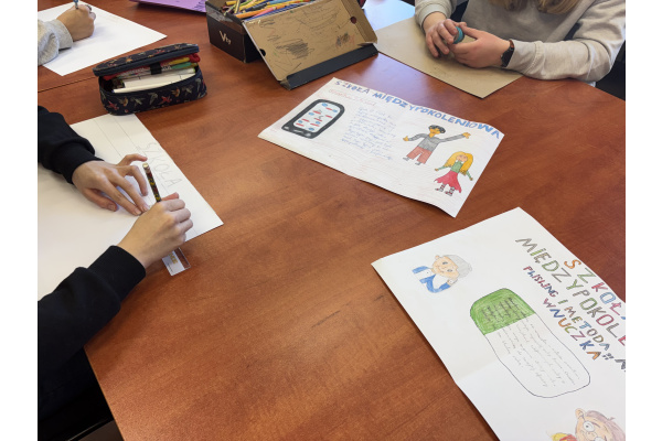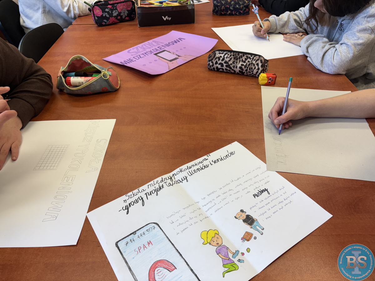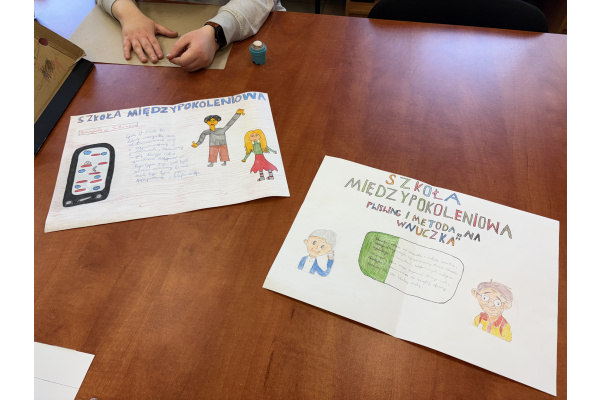Uczniowie z klasy IIIB i IIID bardzo angażują się w projekt, zostały wykonane plakaty i przygotowane materiały na zajęcia z seniorami.