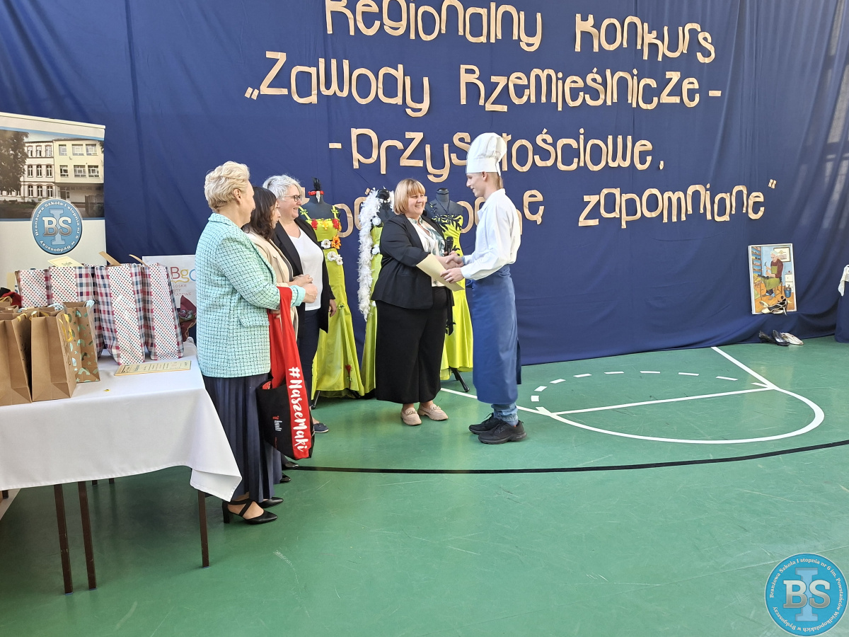 W środę 5.11.2025 odbył się w naszej szkole, finansowany z BGO, Regionalny Konkurs: Zawody rzemieślnicze - przyszłościowe, choć trochę zapomniane. Gościliśmy młodzież z Grudziądza, Włocławka, Torunia i Bydgoszczy. Uczniowie rywalizowali w kategoriach kucharskich, cukierniczych, krawieckich, fryzjerskich, ogrodniczych, hotelarskich oraz biznes i zarządzanie. Wydarzenie uświetnili swoją obecnością zaproszeni goście - dziękujemy za interesującą prelekcję, pracę w jury i wsparcie. Do dekoracji wykorzystaliśmy obraz ,,Szewc'' namalowany przez p. Henryka Filipczaka. W imieniu p. Dyrektor Justyny Pokorskiej-Kawa i całej społeczności szkolnej gratulujemy uczestnikom konkursu.