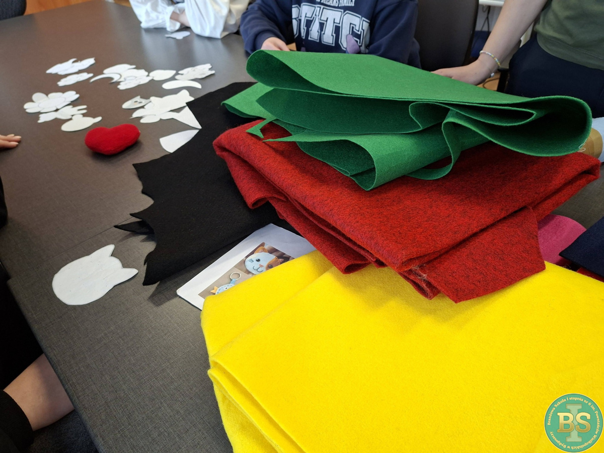 W czwartek 26.03.2026 odbyły się w szkole warsztaty krawieckie. Gościliśmy uczniów klas ósmych szkoły podstawowej, których zaprosiliśmy do wspólnego wykonywania kolorowych breloczków.