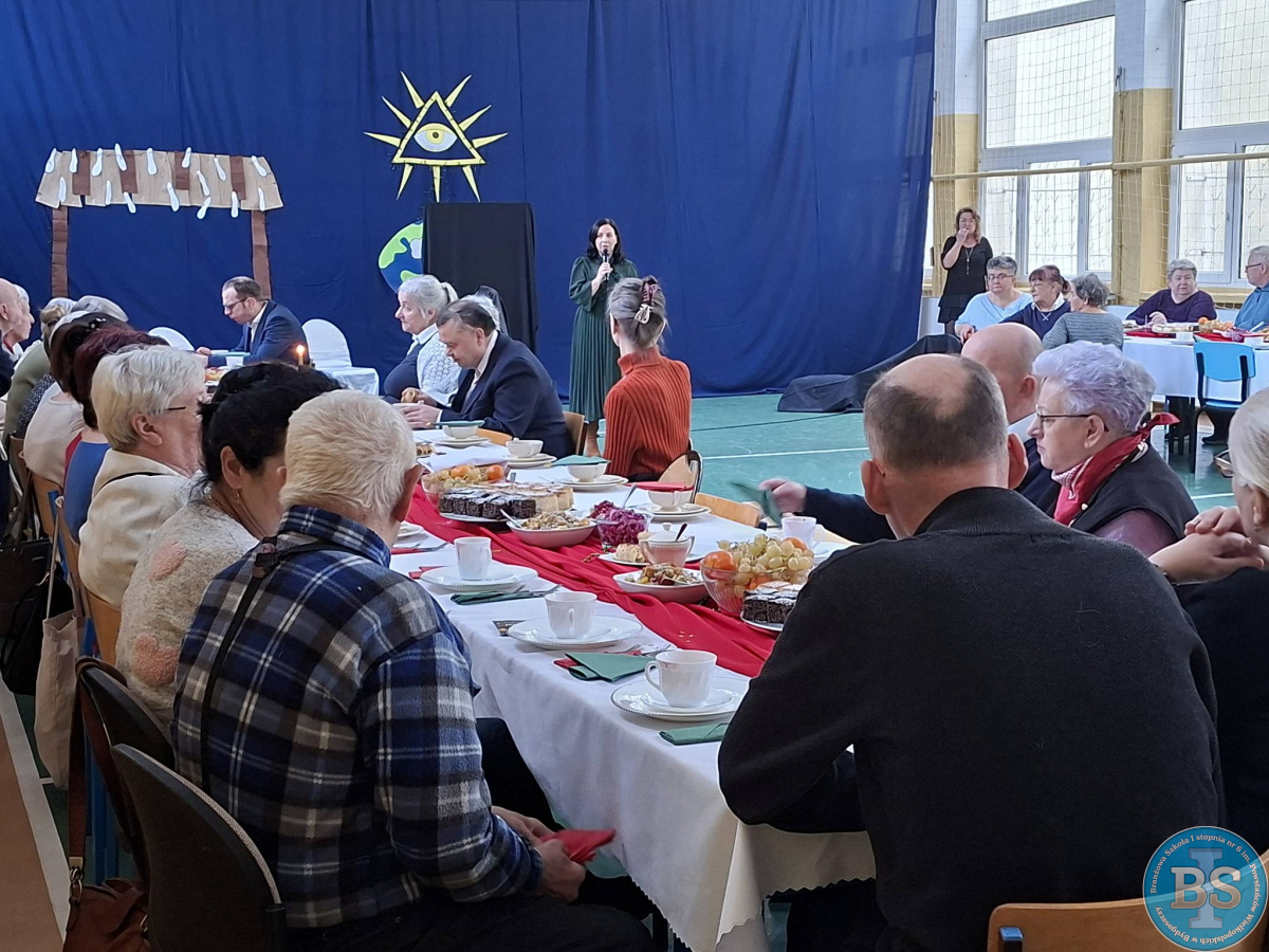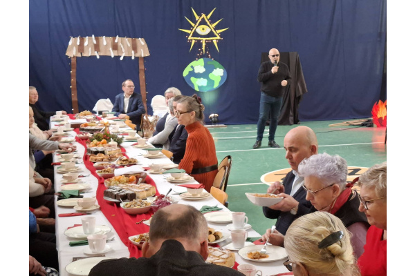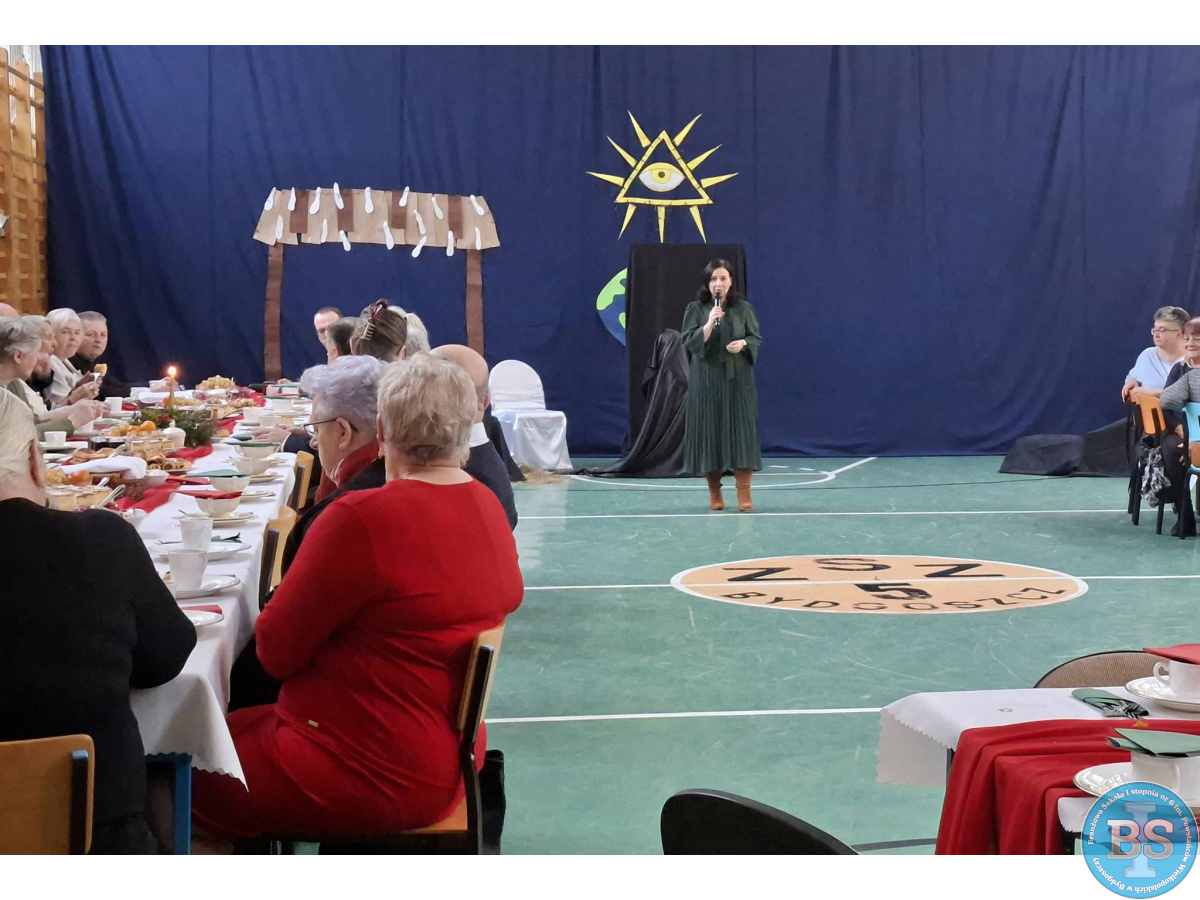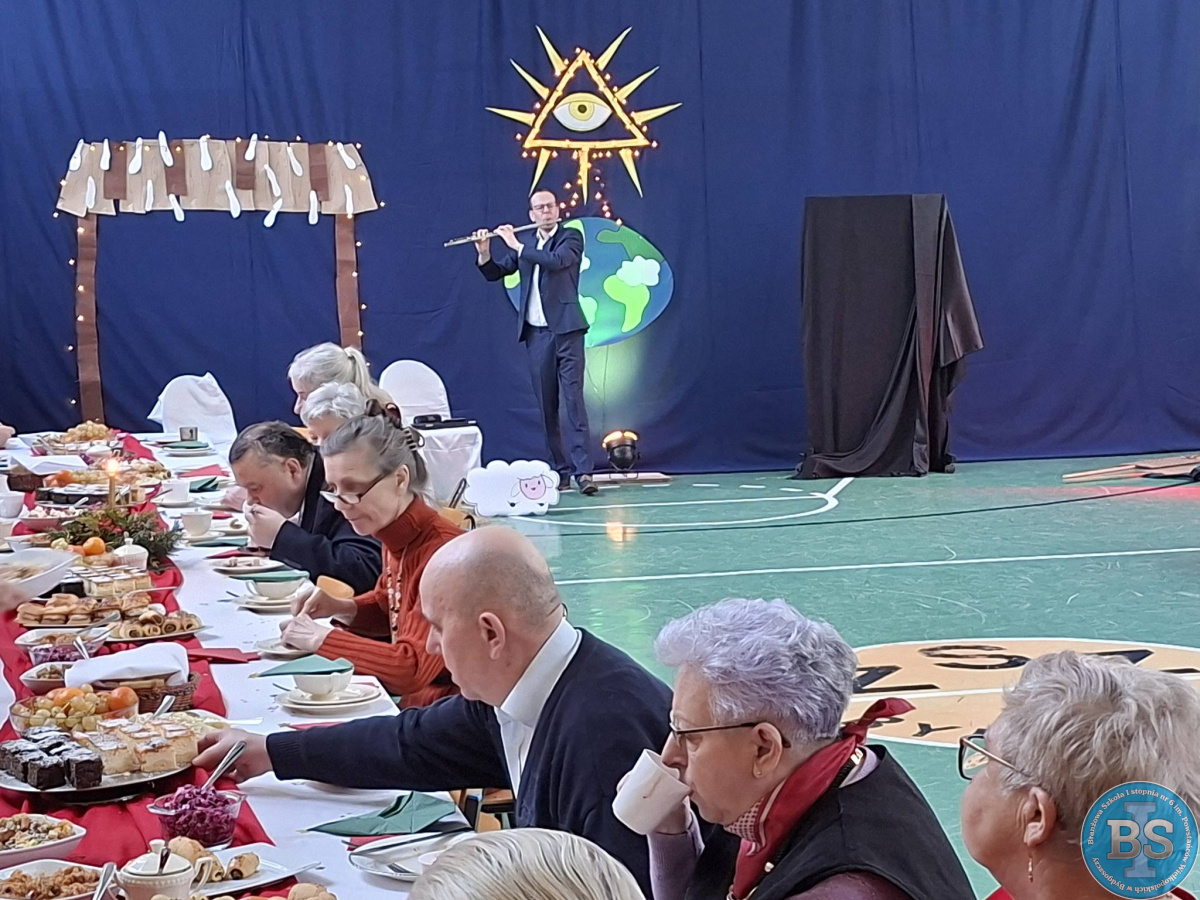 W czwartek 18.12.2025r. w naszej szkole odbyła się, organizowana przez Radę Osiedla Okole, "Wigilia dla osób samotnych". Na gości czekała uroczysta kolacja, podczas której można było posłuchać muzyki i podziwiać występy szkolnego koła teatralnego. Dużym zainteresowaniem odwiedzających cieszył się kiermasz wyrobów świątecznych wykonanych przez uczniów. Miło było usłyszeć, że mamy taką zdolną młodzież.