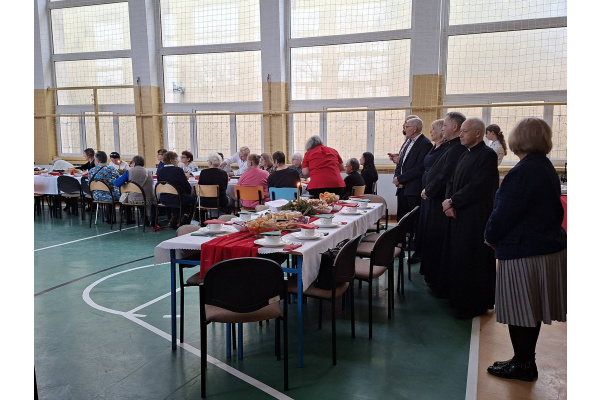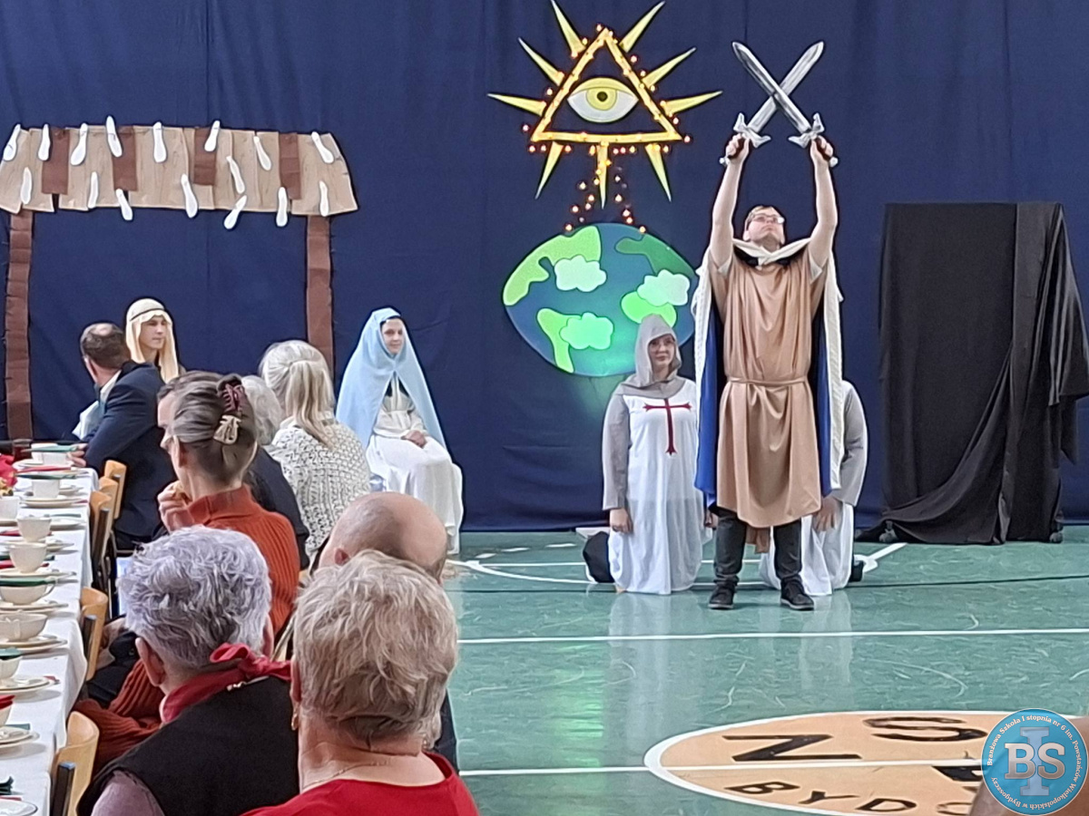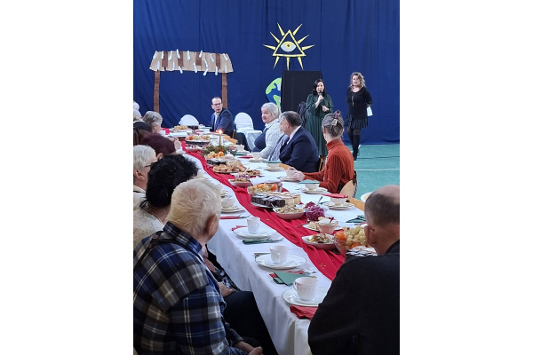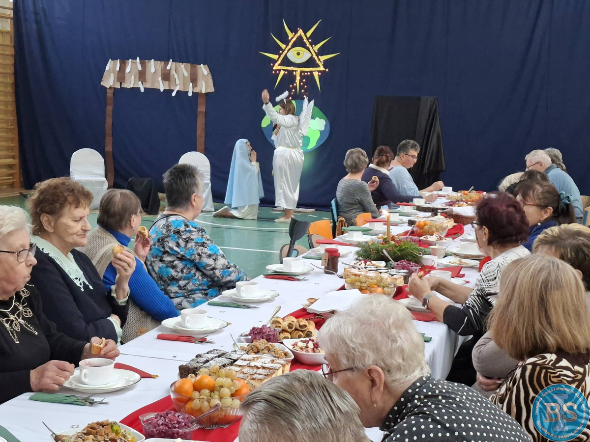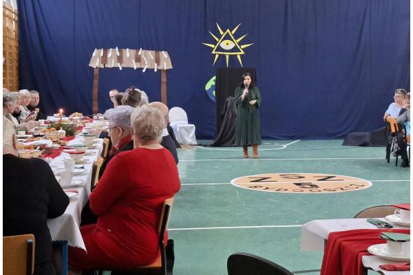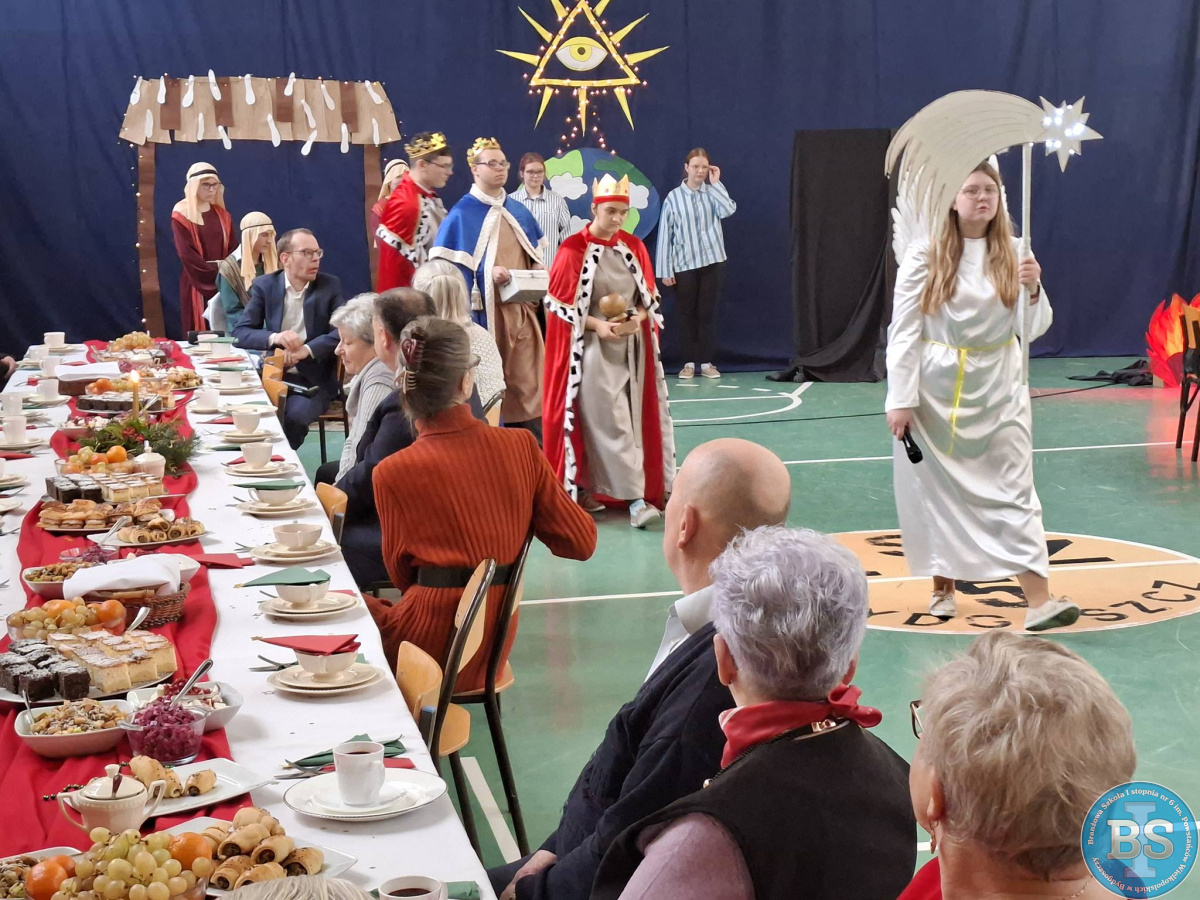W czwartek 18.12.2025r. w naszej szkole odbyła się, organizowana przez Radę Osiedla Okole, "Wigilia dla osób samotnych". Na gości czekała uroczysta kolacja, podczas której można było posłuchać muzyki i podziwiać występy szkolnego koła teatralnego. Dużym zainteresowaniem odwiedzających cieszył się kiermasz wyrobów świątecznych wykonanych przez uczniów. Miło było usłyszeć, że mamy taką zdolną młodzież.