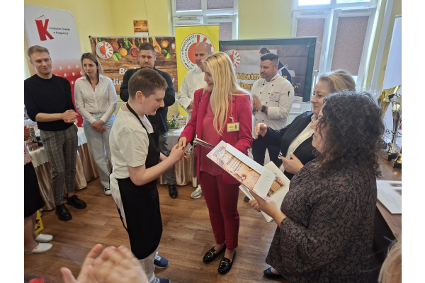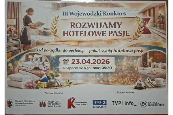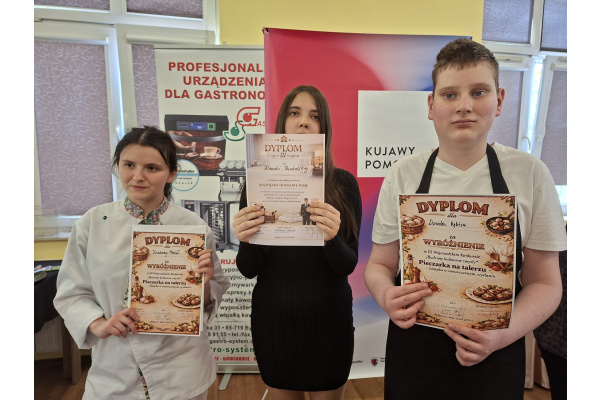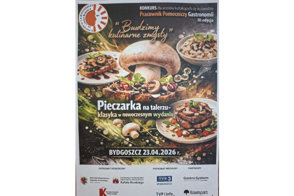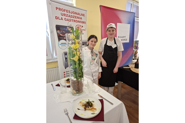 W czwartek 23.04.2026 uczestniczyliśmy w wojewódzkich konkursach organizowanych w SOSW nr 1 im. L. Braillea. Razem z kucharzami ,,Budziliśmy kulinarne zmysły'', a z pracownikami pomocniczymi obsługi hotelowej ,,Rozwijaliśmy hotelowe pasje''. Naszą szkołę reprezentowali kucharze Zuzia i Dawid, którzy otrzymali wyróżnienie w rywalizacji oraz pracownik pomocniczy obsługi hotelowej - Klaudia - laureatka trzeciego miejsca. W imieniu całej społeczności szkolnej serdecznie gratulujemy.