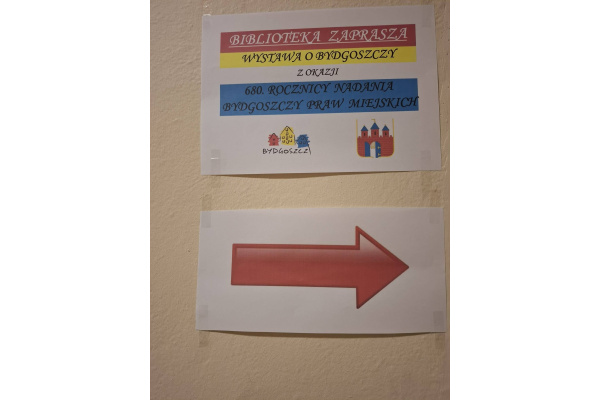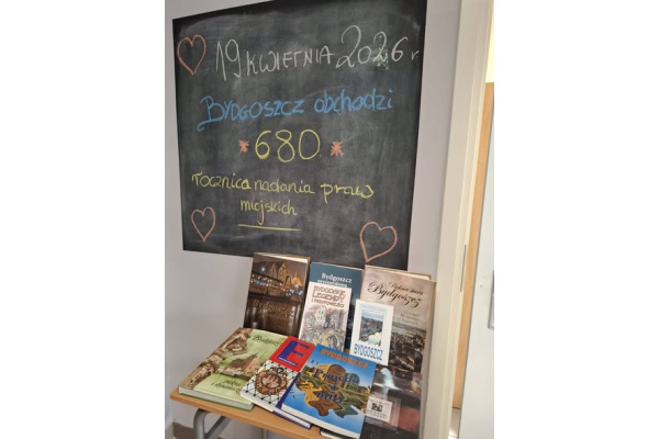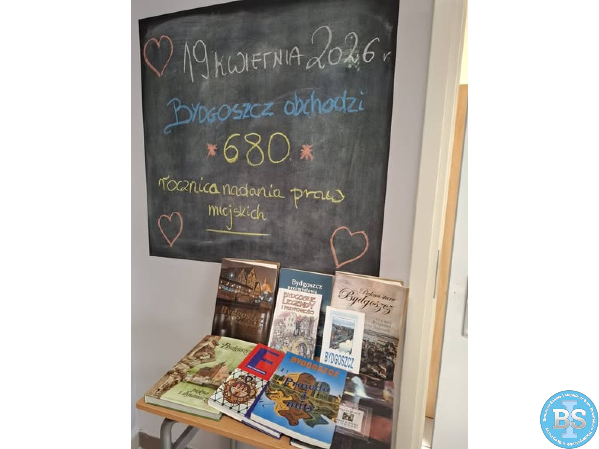 Biblioteka szkolna zaprasza na wystawę dotyczącą Bydgoszczy z okazji 680 rocznicy nadania Bydgoszczy praw miejskich za sprawą króla Kazimierza Wielkiego.