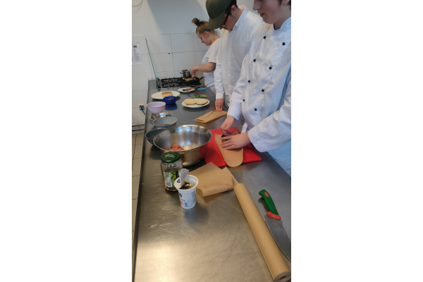 Na ostatnich zajęciach kucharze klasy 3a ćwiczyli tematykę konkursu "Gotuj z Braillem".
