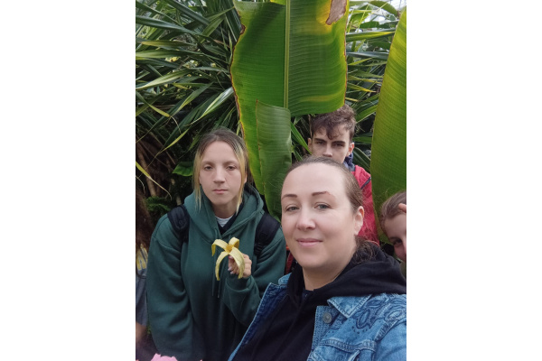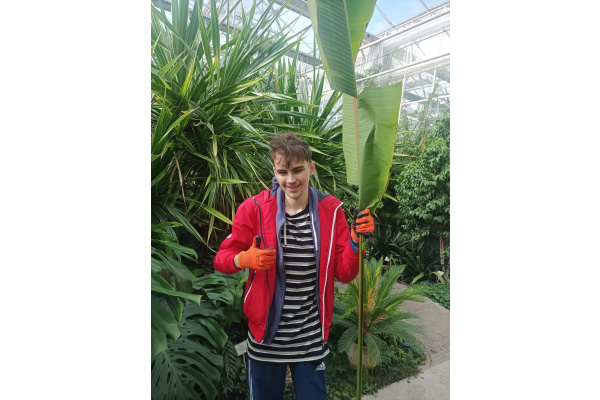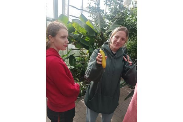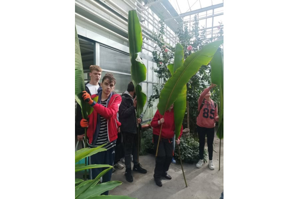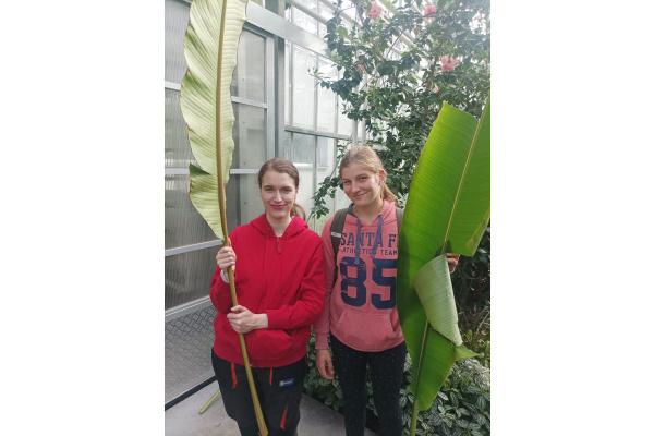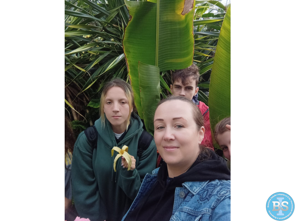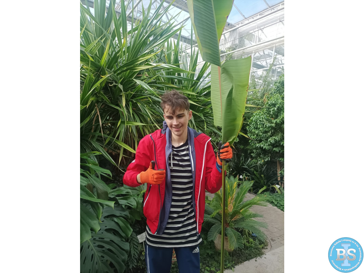 Po zakończonej pracy w szklarni mieliśmy możliwość zwiedzania szklarni i ogrodu botanicznego IHAR. Pan kierownik Jarosław Mikietyński jak zawsze z pasją i sercem opowiadał o roślinach, które mogliśmy zobaczyć. Rozdał nam też liście bananowca i banany na drogę.